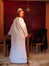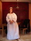 Knöchel- bis bodenlang, lange gerade geschnittene Ärmel, Geren an den Seiten, auf Wunsch Tunnelzug mit Bändchen am Handgelenk