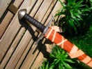Eine Holzscheide könnt Ihr bei mir ab 150,- bekommen, der Preis versteht sich inklusive Verbrauchsmaterialien und Leder, es kommen lediglich Mehrkosten für Verzierungen dazu.